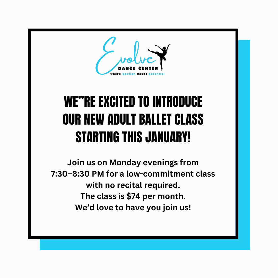At Evolve Dance Center, we believe dance is more than movement. It is a journey that builds confidence, creativity, and growth. Our experienced instructors guide dancers of every age and skill level in a supportive, welcoming environment. Explore our classes for children, teens, and adults, and discover how dance can help you shine both on and off the stage.
